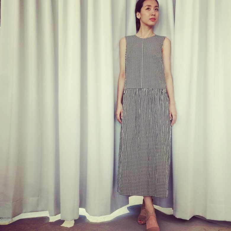 少しゆったりとしたワンピースで大人のリラックス感のあるスタイルを。