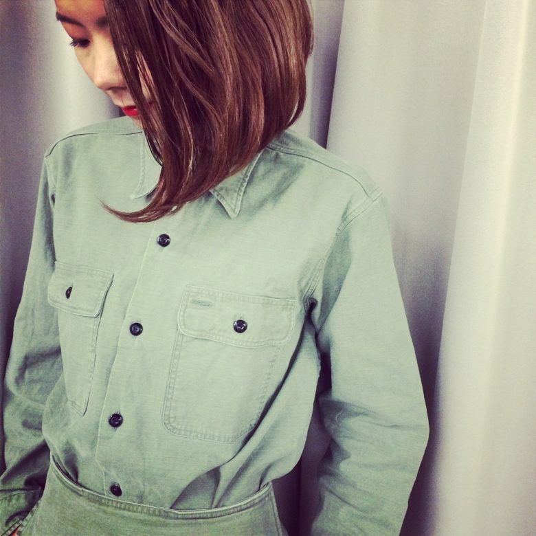 張りのあるワークシャツ。