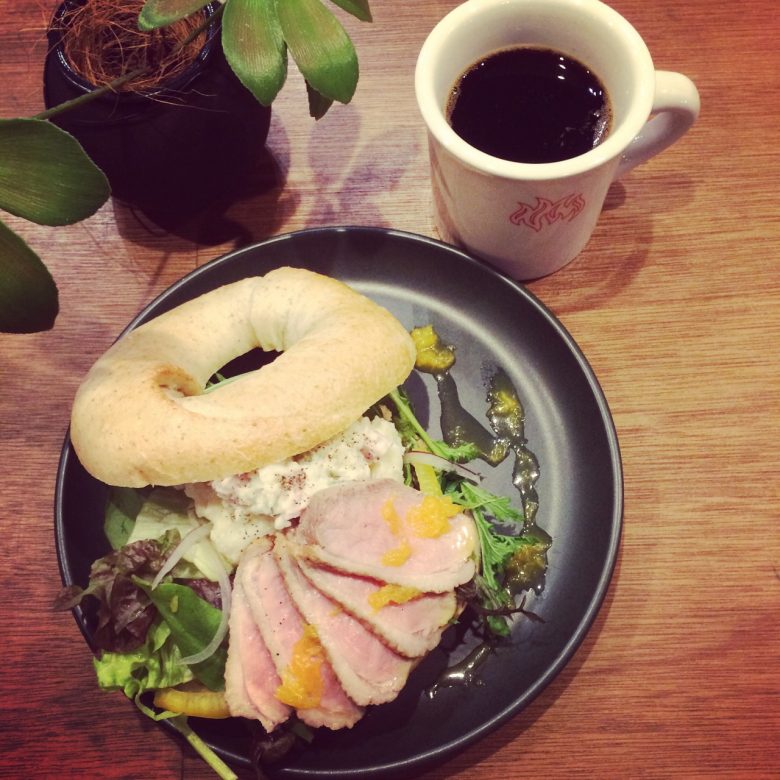 ベーグルプレートは鴨のオレンジソース、ポテトサラダ。