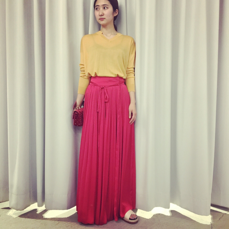 TOKYO 21.03.2017 春を感じるイエロー×ピンクの華やかなコーディネート。 tops Stella McCartney size…38 ¥92,000+tax skirt mame size…1,2 ¥39,000+tax 17ss mame marni stellamccartney WEAR