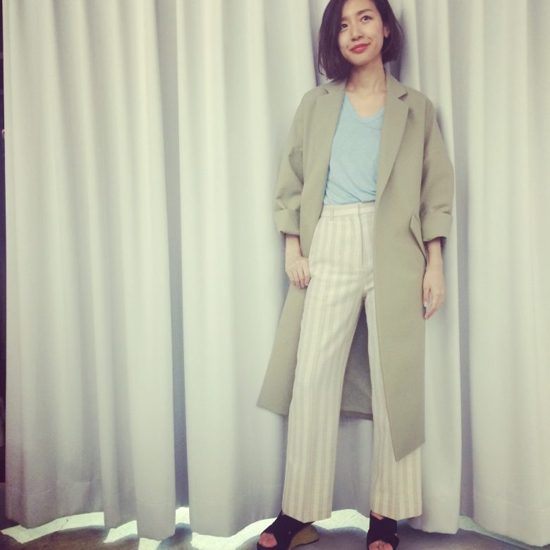 春アウターは袖を少し折ってバランスをとるとこなれた印象に。