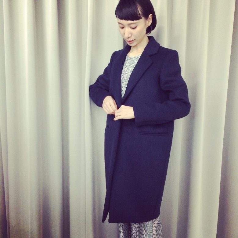 昨年に引き続き大人気のネイビーのメルトンコクーンコート。ワンボタンですっきりした印象に◎