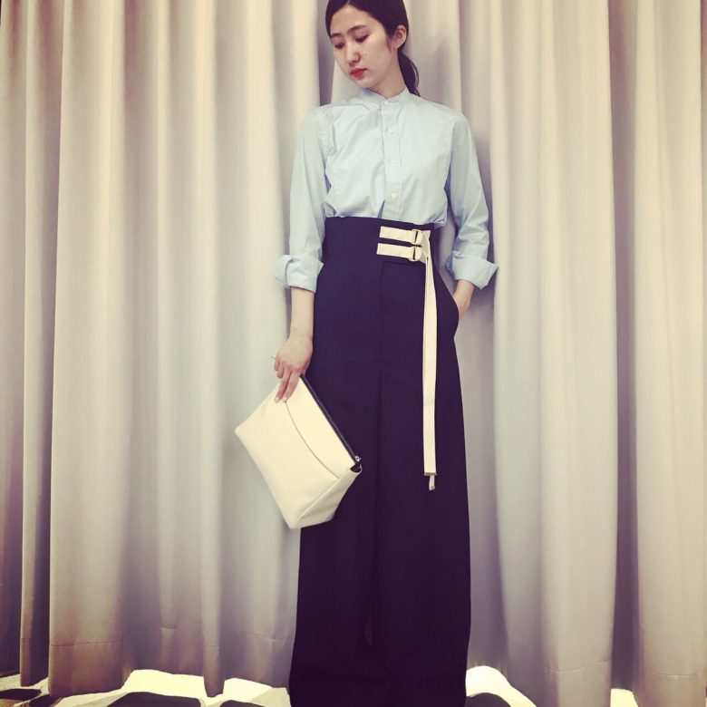 TOKYO 26.05.2017 正統派なシャツもハイウエストのパンツでモードなスタイルに。 blouse Salvatore Piccolo size…40,42 ¥30,000+tax pants MARNI size…36,38 ¥154,000+tax 17ss marni salvatorepiccolo therow WEAR