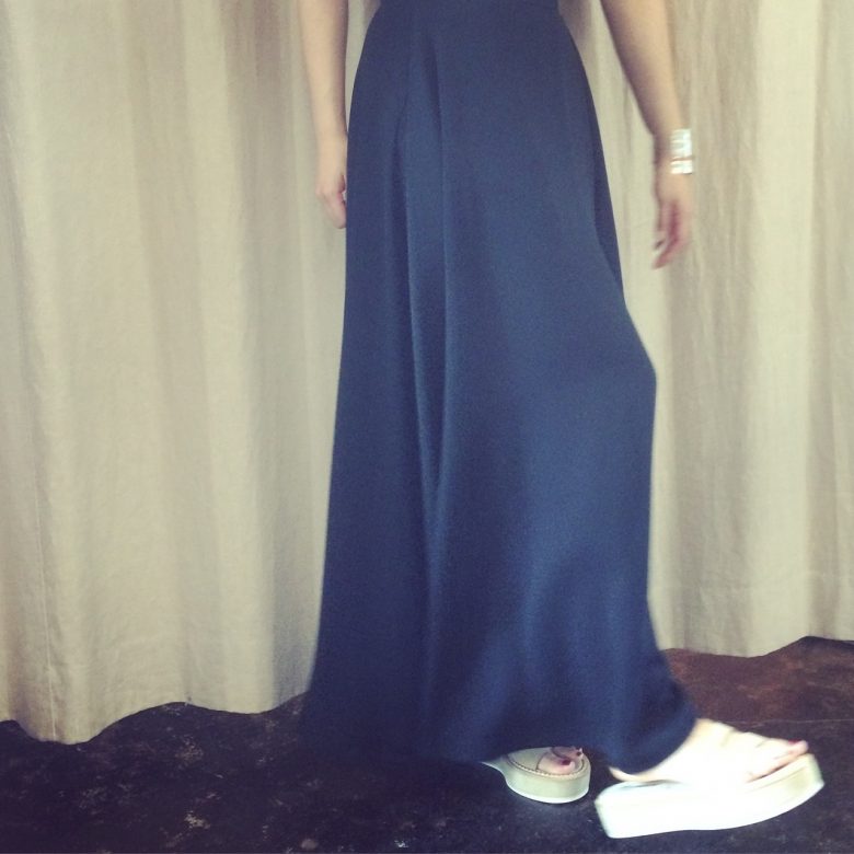 歩くと滑らかな生地が揺れます。
