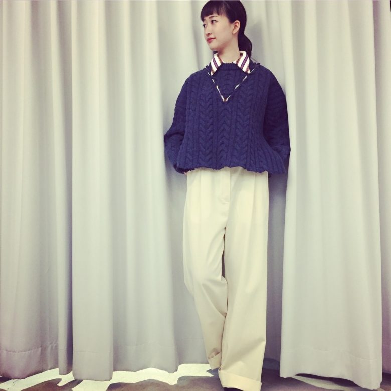 TOKYO 17.10.2016 淡いブルーカラーが目を引くケーブル編みのニットは、シャツを重ねたレイヤードデザインに。一枚で様になるニットです。 knit Maison Margiela size…S ¥146,000+tax 16aw cristianwijnants maisonmargiela WEAR