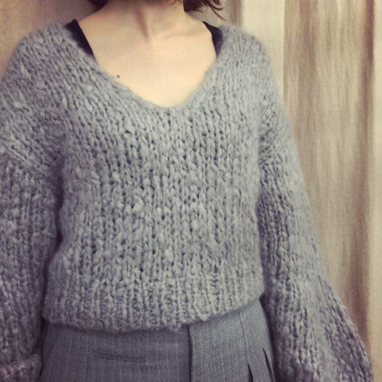 深いVネックと短めな着丈が女性らしい印象に…♡