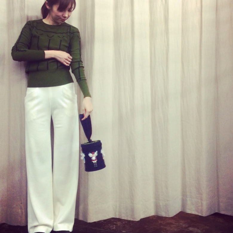 30.10.2015 深みのある色目が際立つニットに合わせ、ホワイトカラーのパンツとスタイリング。 小物でユーモアを取り入れて◎ tops… olympia Le-Tan ¥77,000+tax pant… pelleq ¥43,000+tax olympialetan pelleq