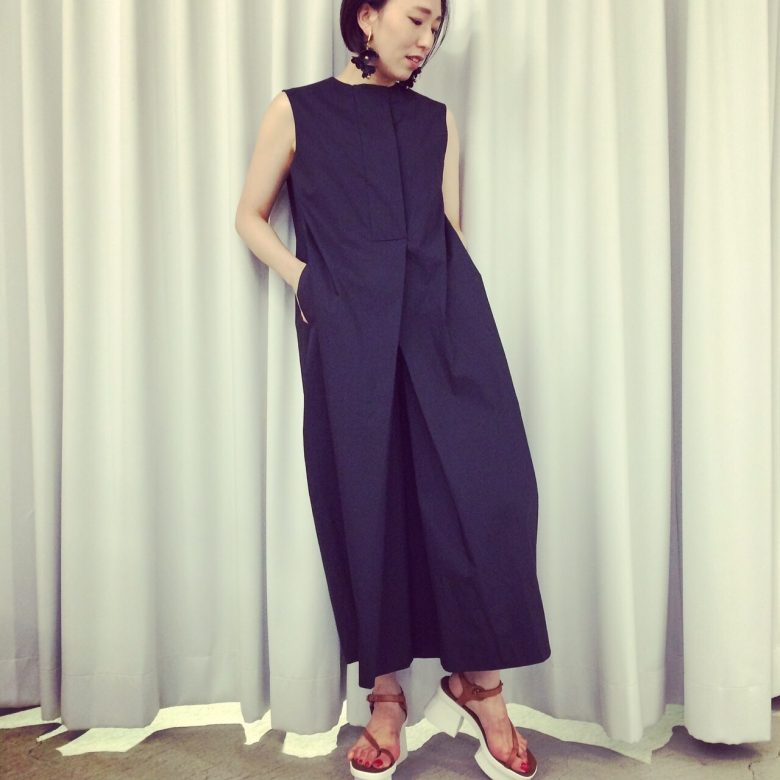 TOKYO 17.06.2016 独特なタックが入ったデザインはワンピースに見え、実はオールインワン。張りと光沢のあるタイプライター生地を使用しています。 ENFOLD size…36 ¥38,000+tax 16ss enfold marni stellamccartney WEAR