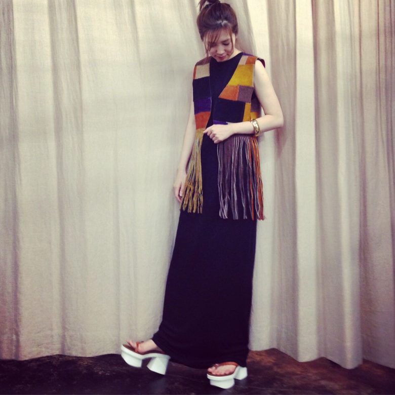 ロングワンピースで合わせて女性らしく♡