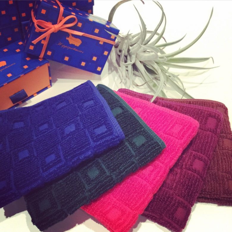 発色と触り心地の良いHippopotamusよりダミエ柄のチーフタオルが入荷しました。引き出し式のBOXに入っていてギフトにも喜ばれます。