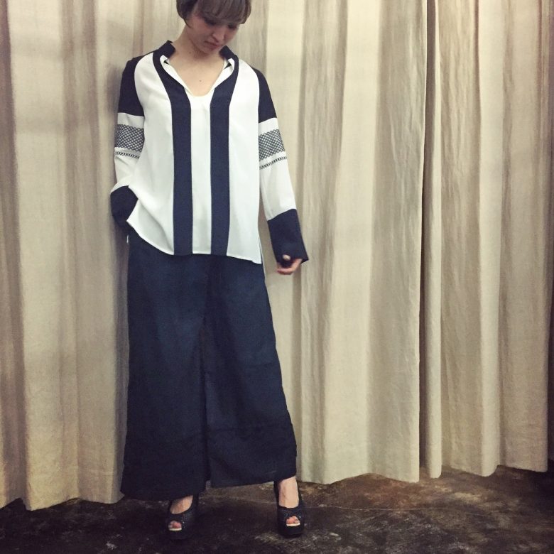 深いVネックの胸元と裾に向かって柔らかなに広がるシルエットが女性らしいエレガントな着こなしを実現♪