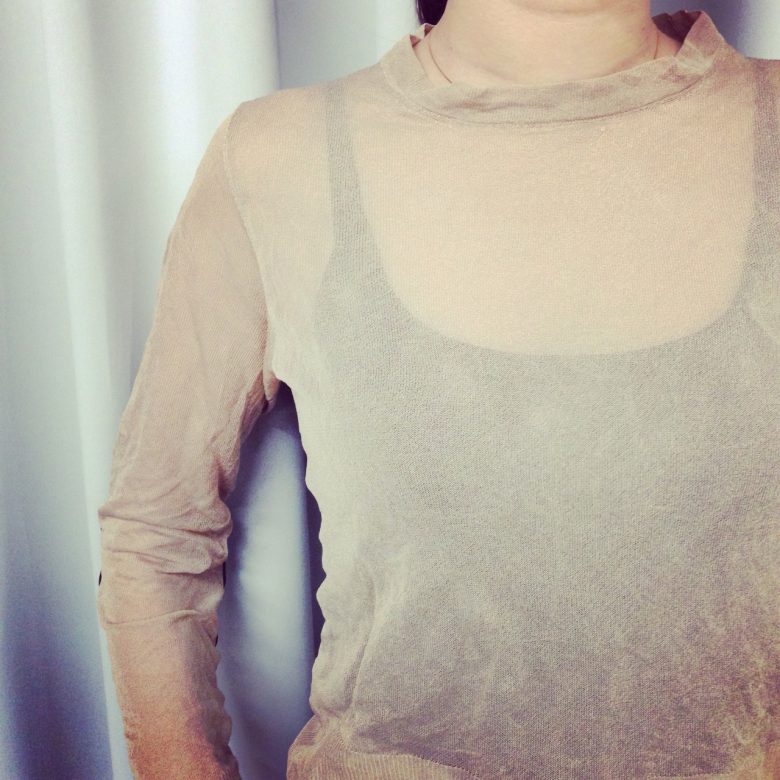 立体感のある襟元が首元をスッキリと見せてくれます。