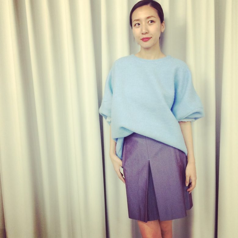 素材はウォーム感があっても、カラーリングで春らしさをプラスできるトップスです。