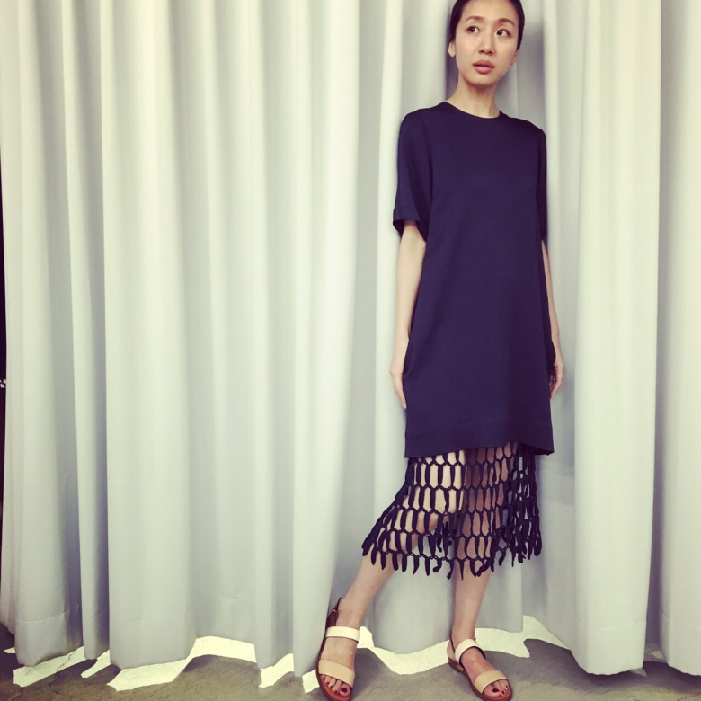シンプルなスタイルこそ素材感のラグジュアリーさが際立ちます。