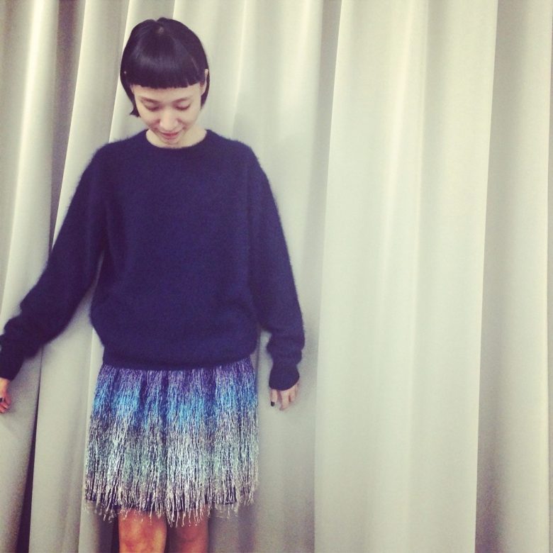 細やかなフリンジのスカート。メタリックなカラーのグラデーションが目を引きます!パーティーなど、お出かけにも◎