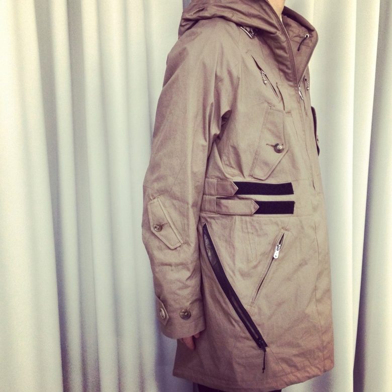 細部までディテールが様々採用されウエストもベルトでシルエットを変更可能。