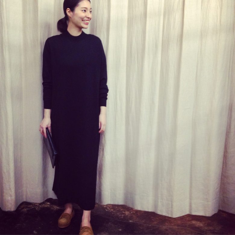 28.01.2016 綺麗目になりがちな黒のワンピースも、フラットシューズを合わせカジュアルダウン。 one-peice ENFOLD ¥36,000+tax col… black,red 16ss enford WEAR