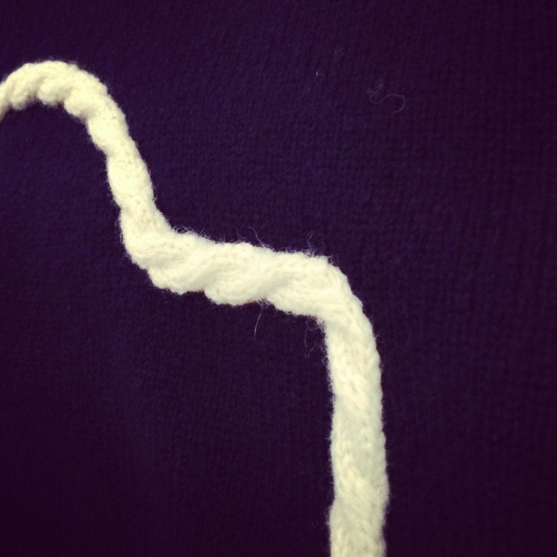 縁取りのデザインは、実はロープ状の立体的なニット。