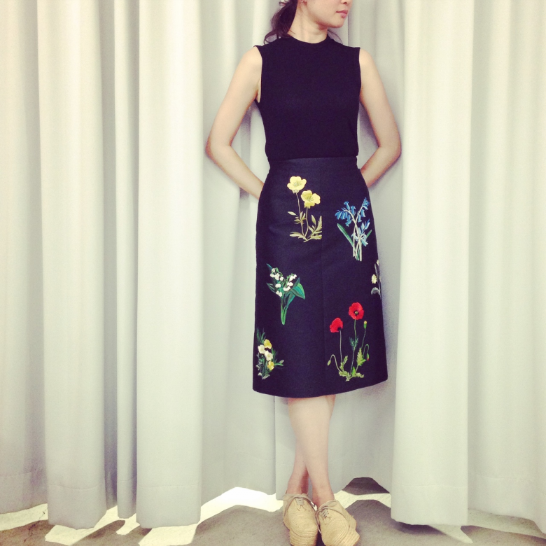 TOKYO 06.06.2016 繊細な刺繍がなんとも美しいスカート。 色とりどりのお花がコーディネートを楽しませてくれます。 STELLAMcCRTNEY price…¥274,000+tax color…black 16ss robertclergerie rosettagetty stella mc cartney WEAR
