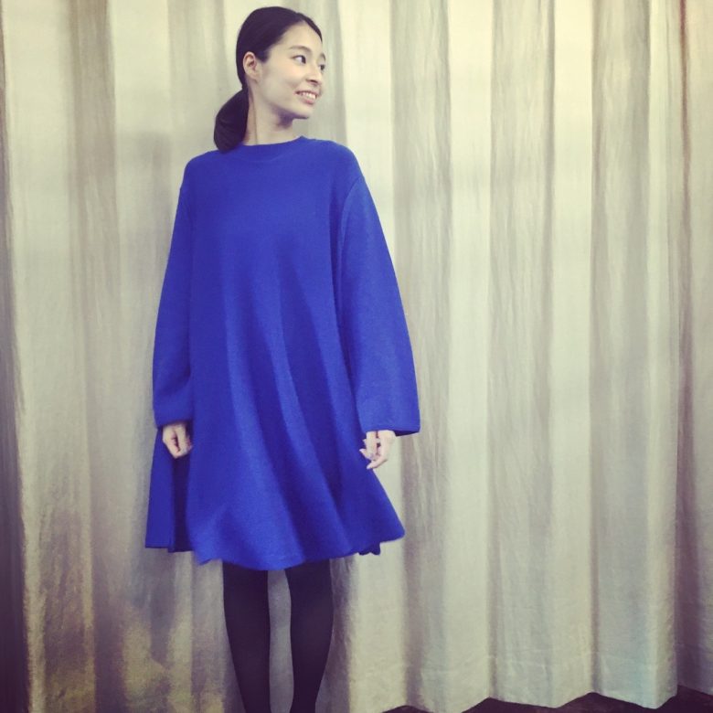 脇からのボリューム感たっぷりに広がるAラインワンピース。