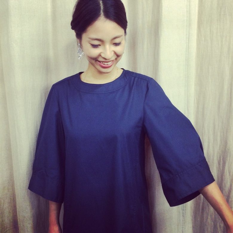 腕を包み込むようなワイドスリーブが