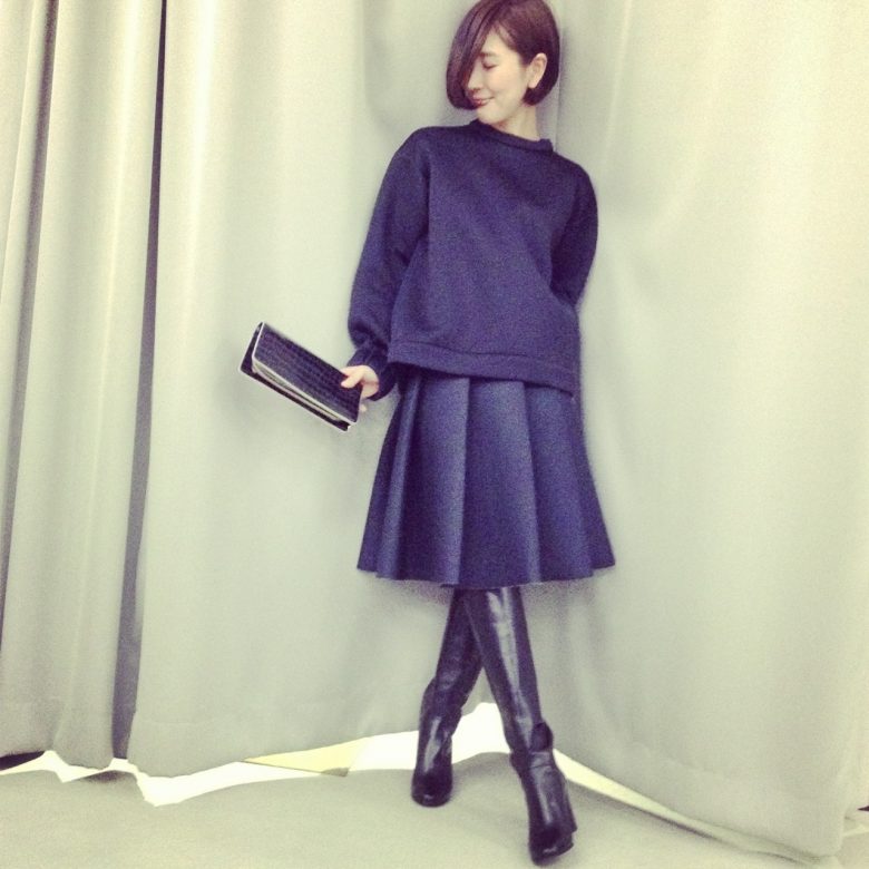 08.11.2013 膝した丈のスカートにロングブーツのバランスが◎ 小物まで全身ダークトーンがかっこいいです! MICHEK VIVIEN long boots…¥126,000- (120,000) color…black.bordoux