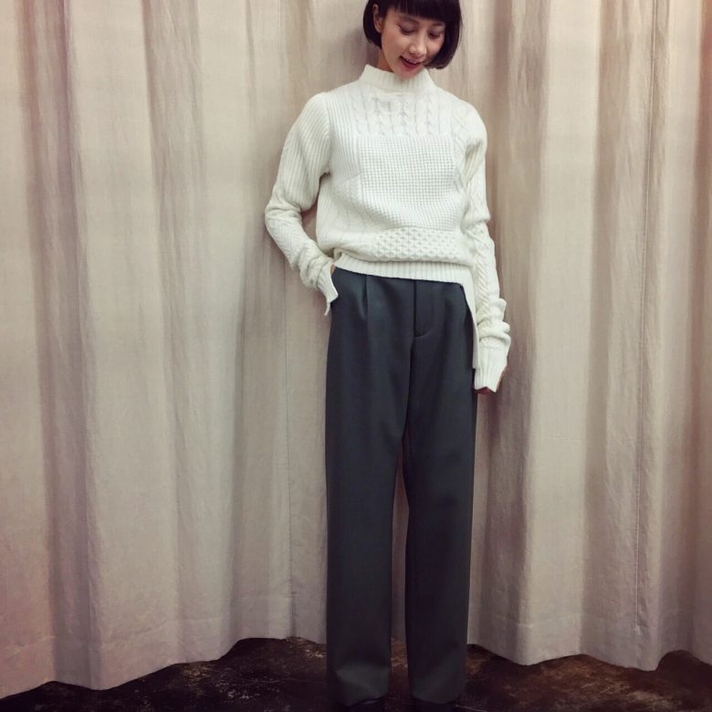 OSAKA 01.11.2016 色々な編み目が折り重なったデザインが 特徴のニットは存在感たっぷり♪ tops CINOH ¥42,000+tax pants AURALEE ¥38,000+tax 16aw auralee cinoh WEAR
