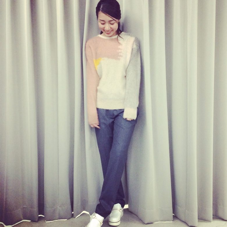 色のコントラストが絶妙なブラシストロークのモヘアニット。