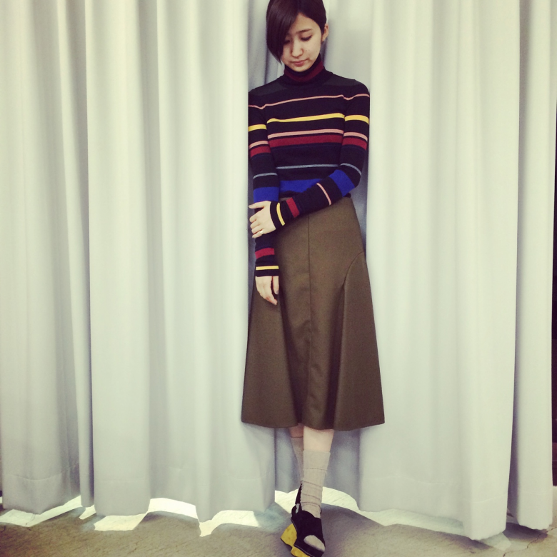 15.08.2015 色物ニットもカーキのスカートで落ち着いた印象に。 tops STELLA McCARTNEY ¥104,000+tax skirt MARNI ¥124,000+tax marni stellamccartney