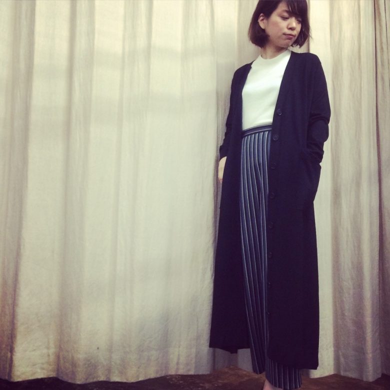16.01.2016 薄手のウールロングカーディガンは 羽織るだけで雰囲気が漂います。 ENFOLD tops ¥36,000+tax color…black,gray,red pants 29,000+tax size…36,38 16ss enfold WEAR