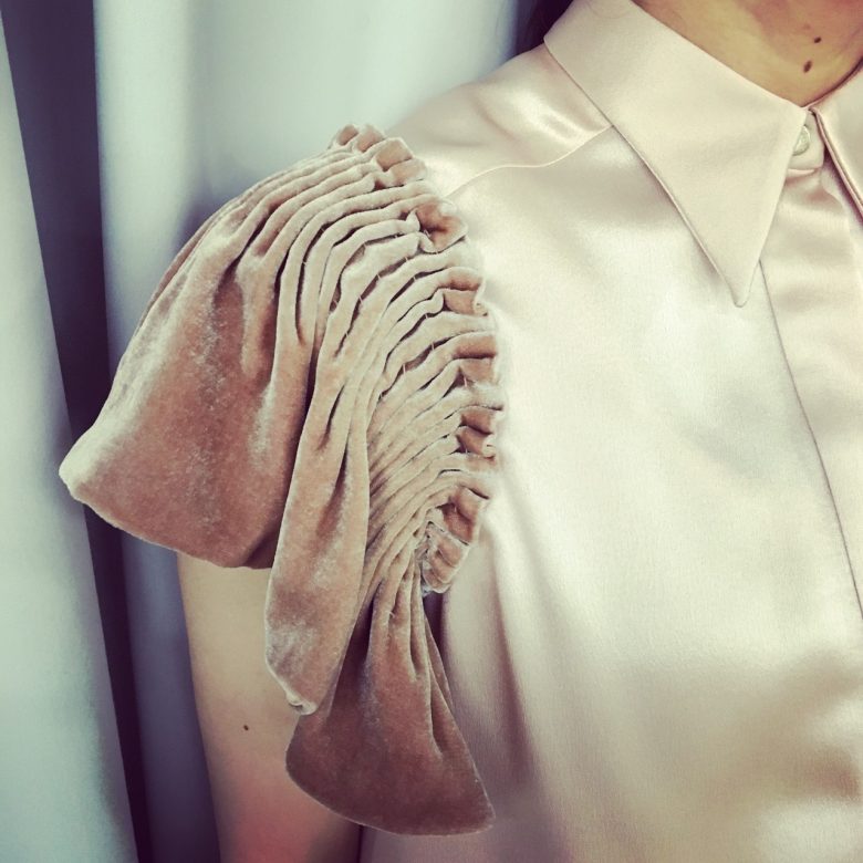 袖の落ち感、シルクの光沢、襟元…細かなディテールまで拘りが詰まっています。