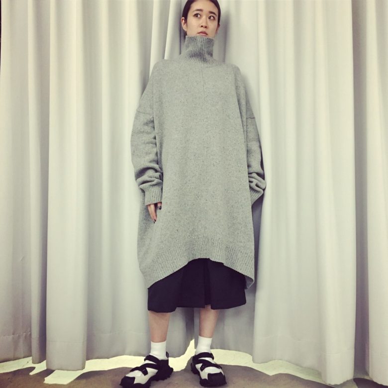 TOKYO 19.10.2016 袖や身幅のたっぷりとしたバランス感がシンプルながらもオーラのあるKNIT。 SEE U LATERと合わせてストリートに。 tops MADISON BLUE price…¥56,000+tax color…grey 16aw hykeadidas madisonblue WEAR