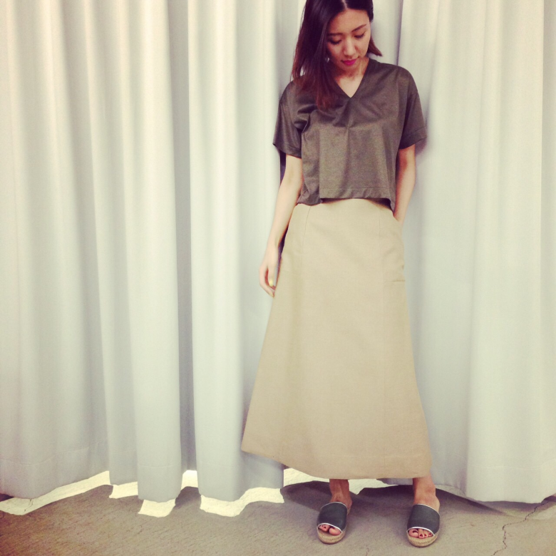 TOKYO 06.04.2016 裾に向かって広がるシルエットが女らしいロングスカートは、シルクのキャンバス素材を使用し、独特な表情がこなれた雰囲気を演出します。 skirt FUMIKA_UCHIDA col… beige,black ¥62,000+tax 16ss biotop fumikauchida WEAR