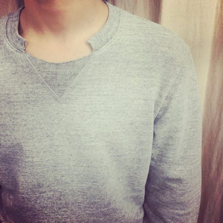 襟ぐりはガゼットの上部のみカットされた独特のデザインです◎