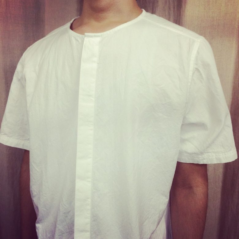 襟なしデザインで前身ごろのボタンは比翼仕立てとなっております。