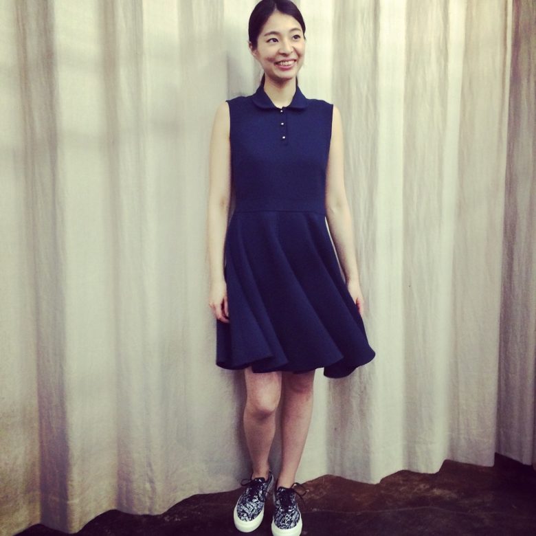 13.04.2015 襟付きの首元やキュッと絞った ウエストがレトロな雰囲気に♡ ストレッチの入った素材で 着心地やシルエットも◎ one-piece MAISON KITSUNE ¥60.000+tax maisonkitsune