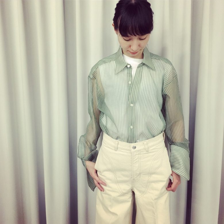 TOKYO 22.05.2017 透け感がありレイヤードも楽しめるシルクシャツ。 オーバーサイズで、溜まる空気感が素敵です。 FUMIKA_UCHIDA size…36 ¥59,000+tax 17ss fumikauchida hanes WEAR