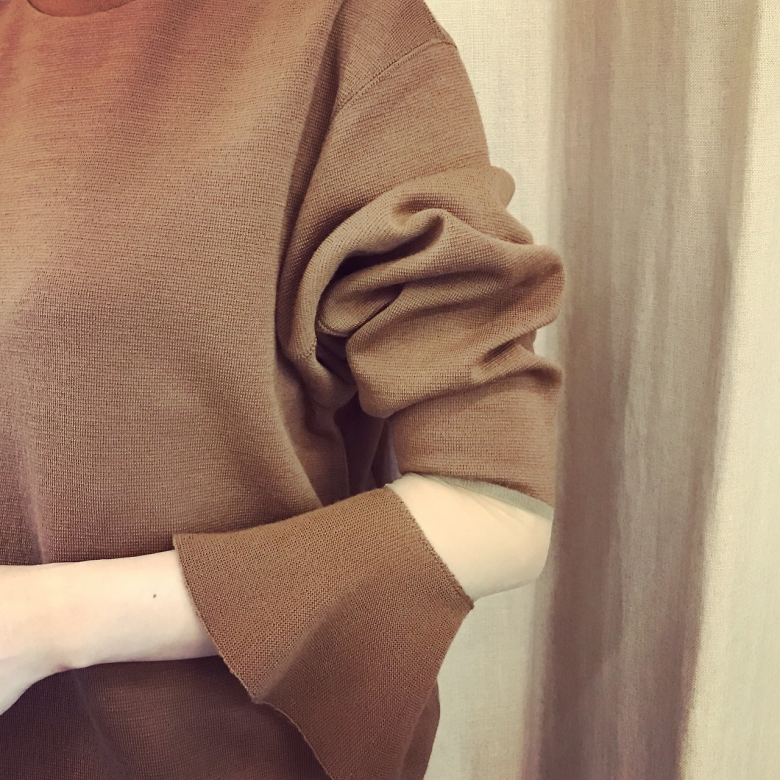 透け感のある切り替えとフレアになった袖口がアクセントに…