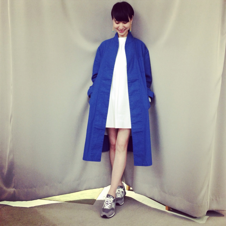 長めの丈の羽織りは鮮やかなブルーで様々なコーディネートの主役に◎まだまだ風が冷たい季節、大活躍です‼︎