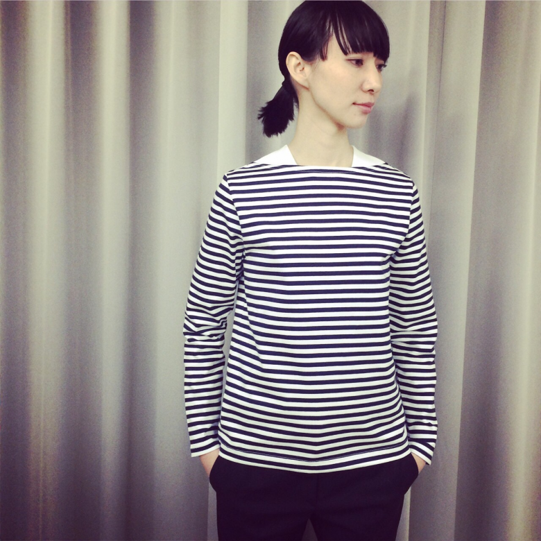 03.02.2015 2/20よりスタートのHYKE POP UP SHOPに先駆けまして、新作が数点入荷しております。 お馴染みのボートネック、今年はボーダーでご用意。 2月4日より発売開始です。 top size…1 ¥18,000+tax hyke