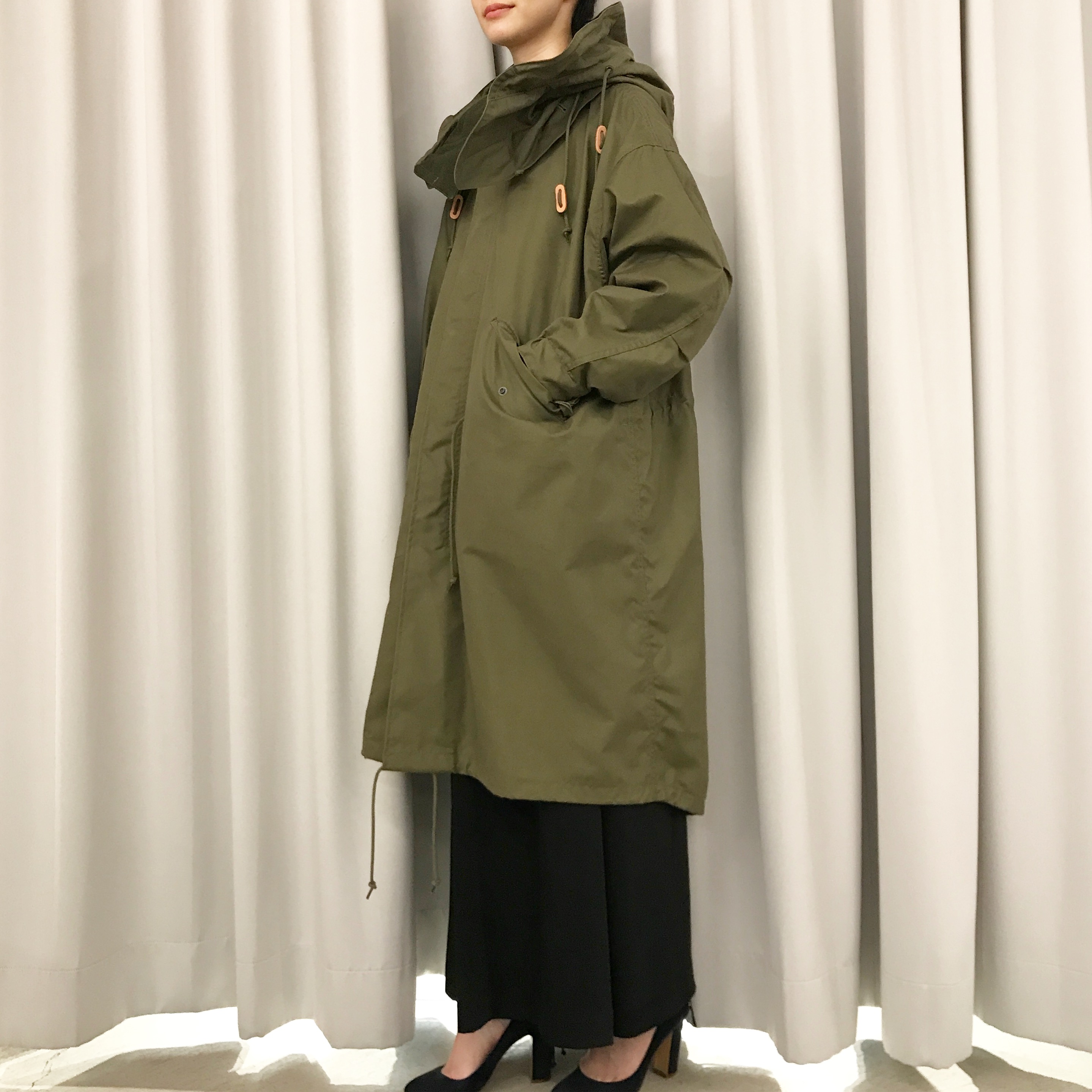 M-65 FIELD COATからのインスピレーションでデザインされた定番のフィールドコート。ビッグシルエットですが袖周りはすっきりしており、マニッシュなコーディネート以外でも楽しみたいです。