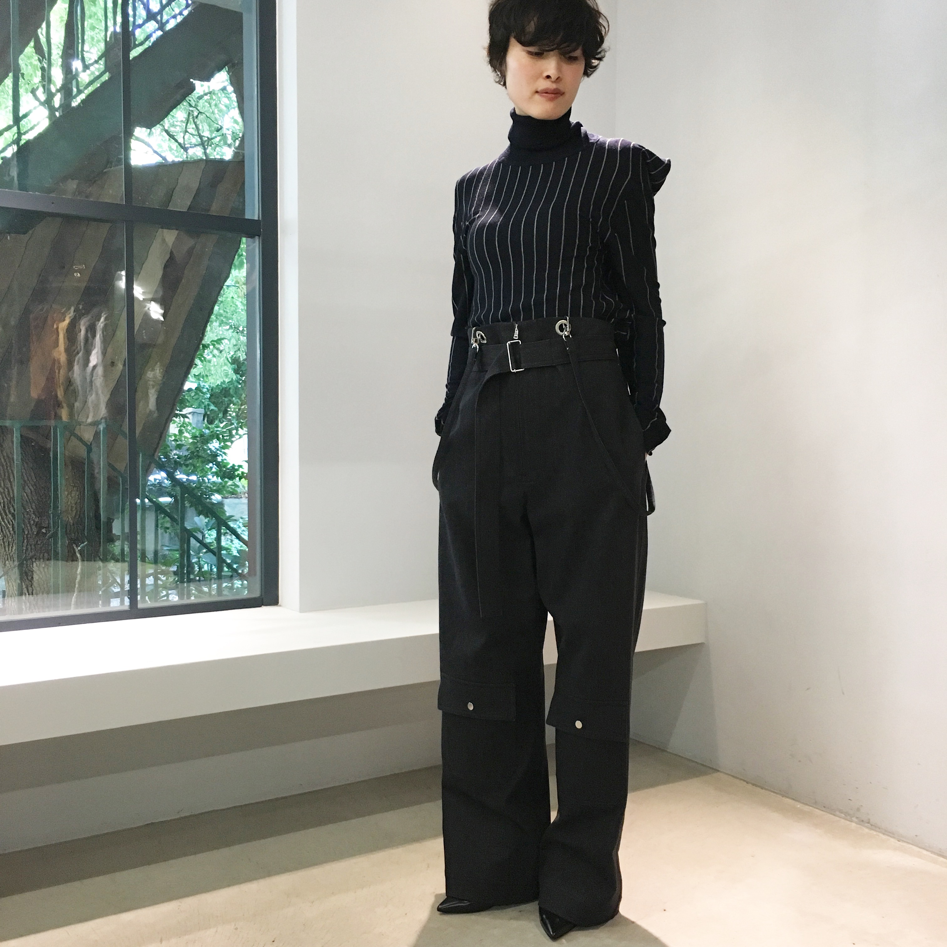 あえて四角い裁断をする事で肩に溜まりのあるデザインに。