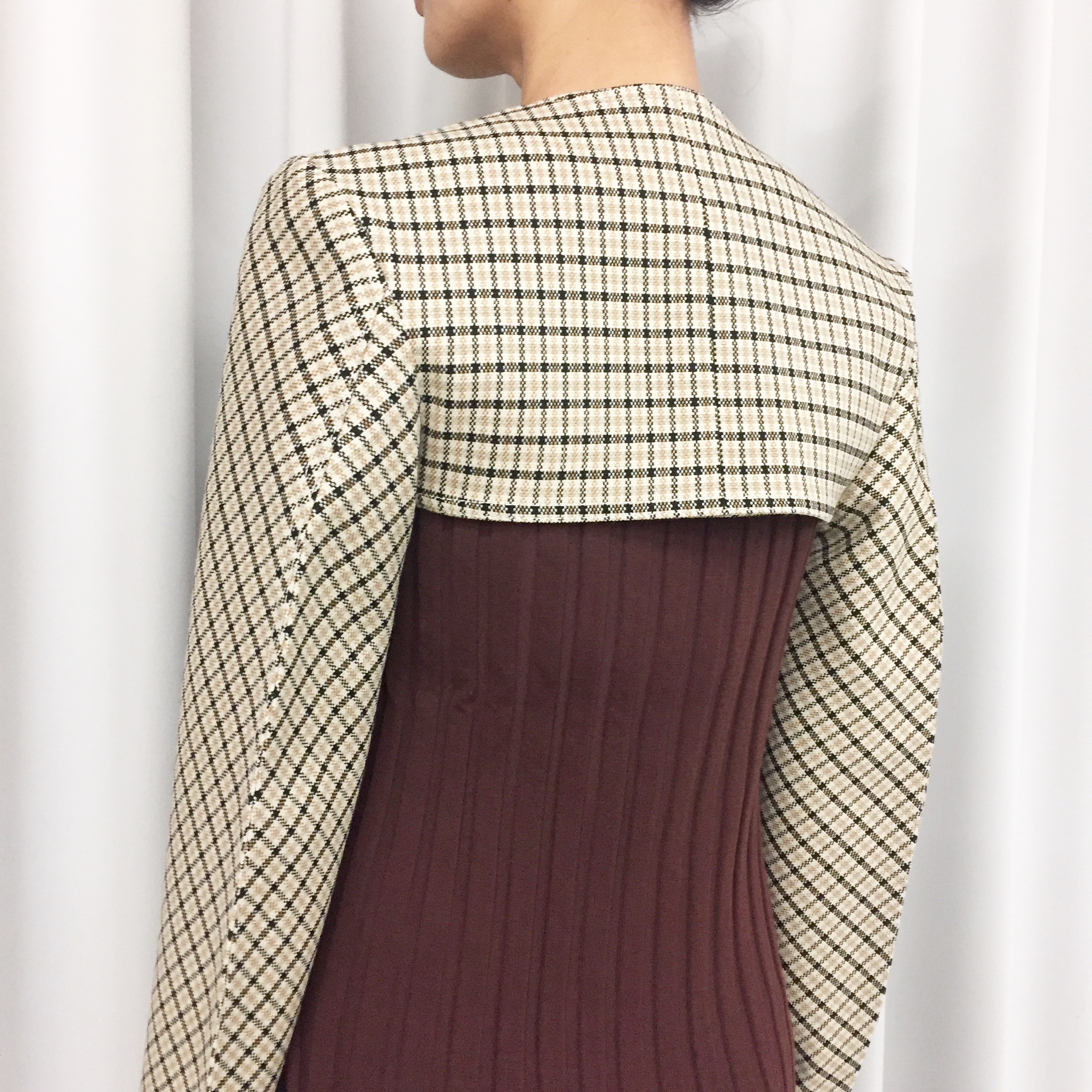ユニークなデザインながらもモダンなチェック柄なので、ぐっと素敵な大人のレイヤードスタイルに…。