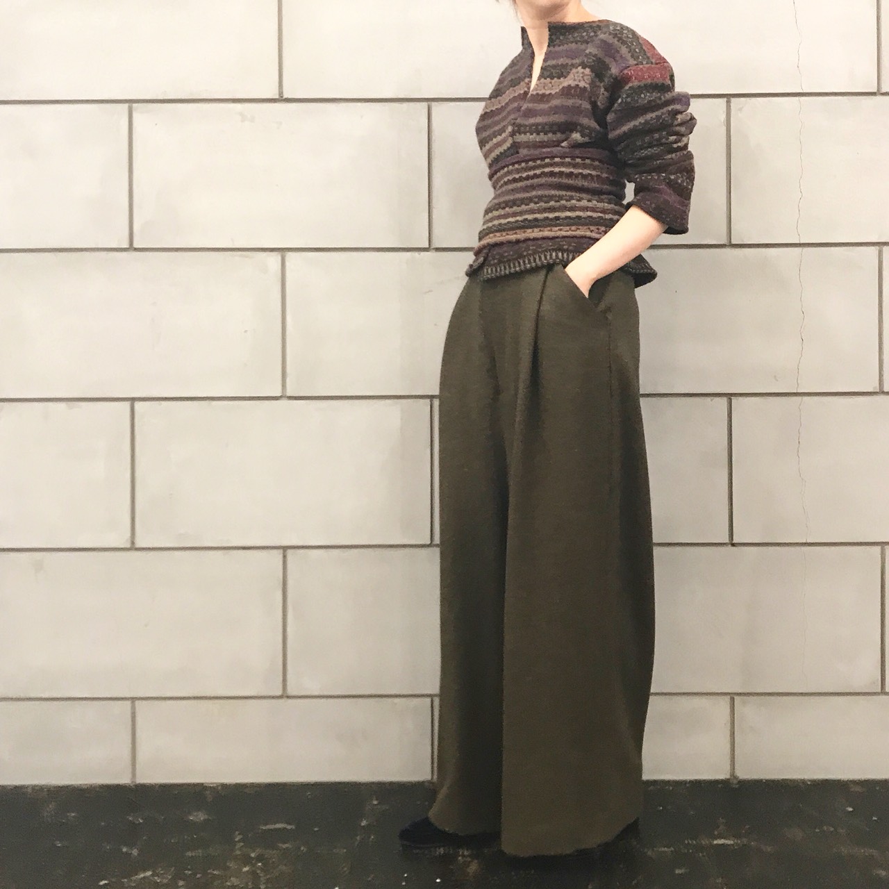 柄のリピートがない手間のかかる編み地が特徴です。