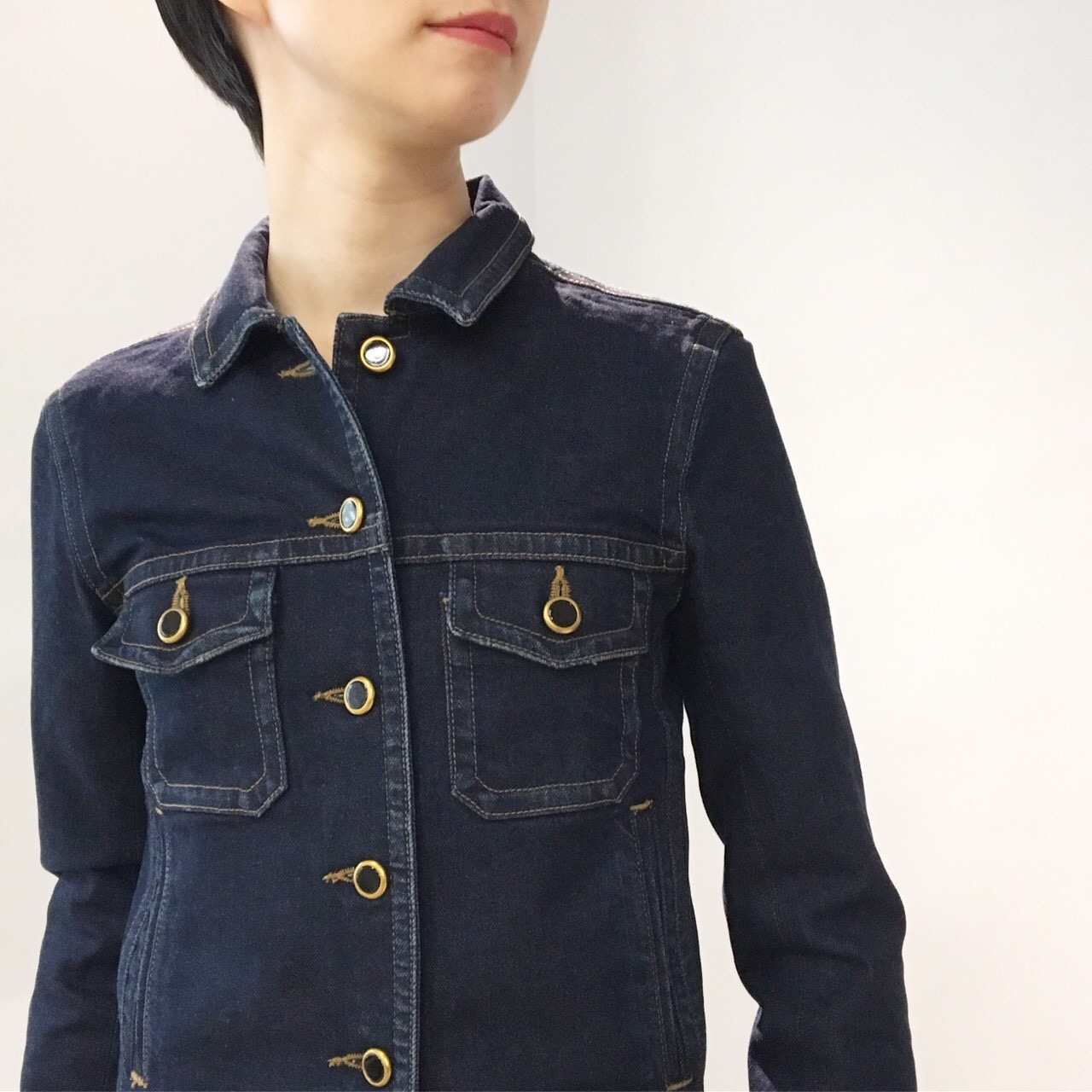 ボタンが象徴的な KHAITE のデニムジャケットは、デイリーに取り入れたい一着。