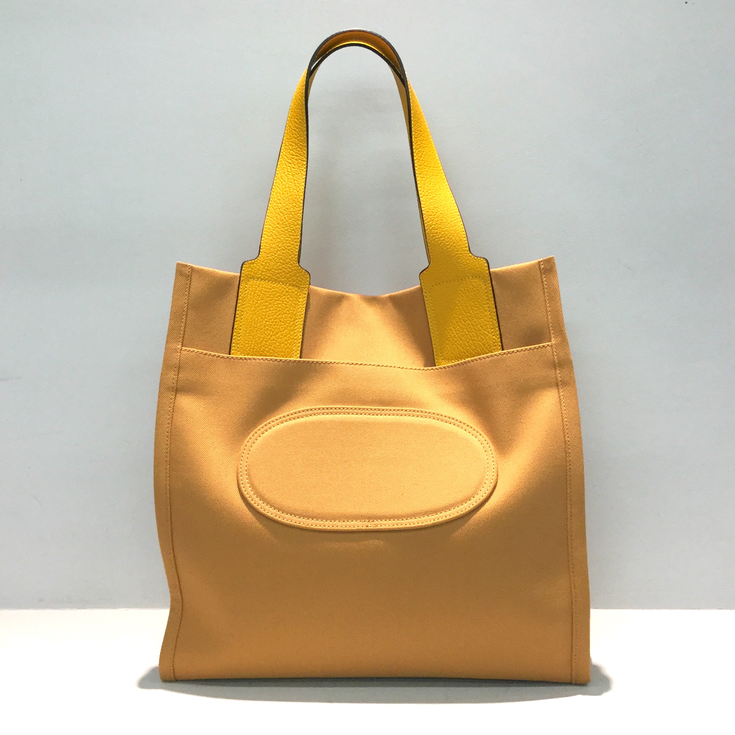 大容量のキャンバス生地に、グレインレザーのハンドルが効いており、