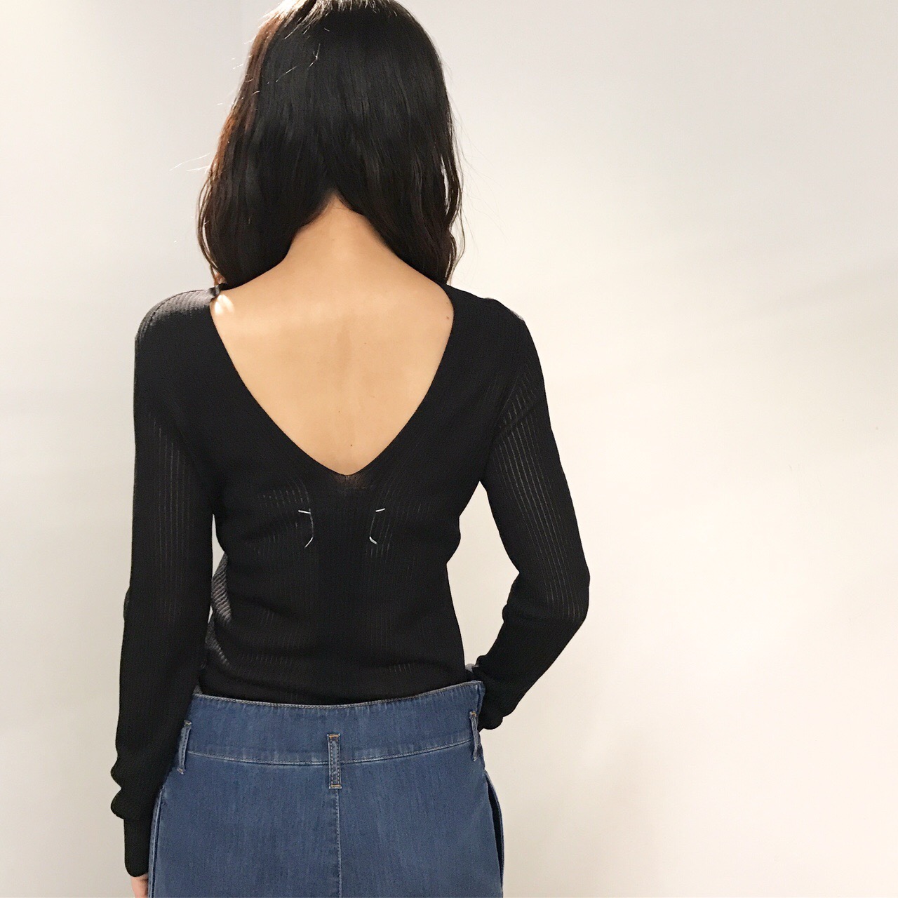 程よい透け感が魅力的な Maison Margiela のリブニット。