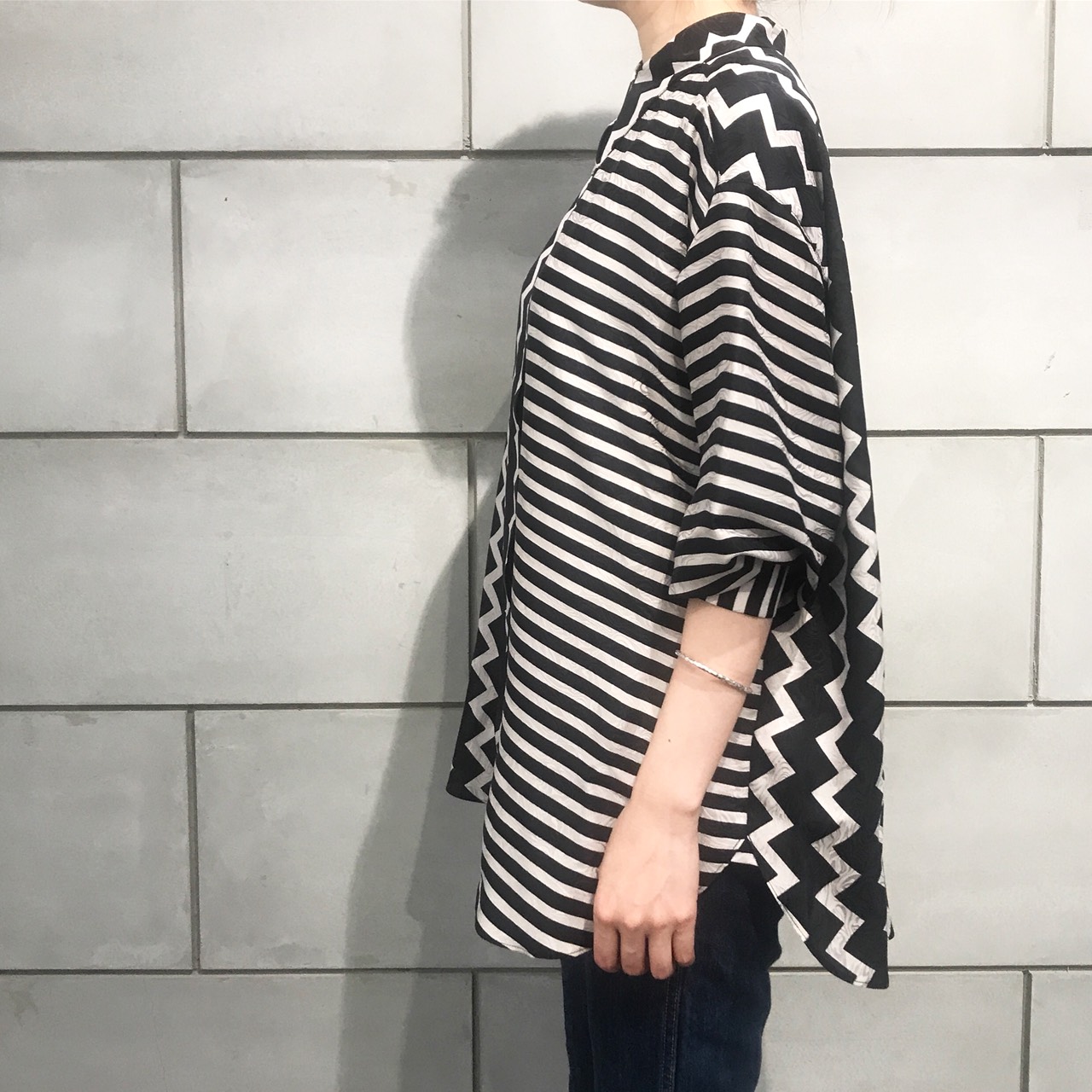 ストライプとジグザグのファブリックが、角度によって表情の変化をお楽しみ頂けます。