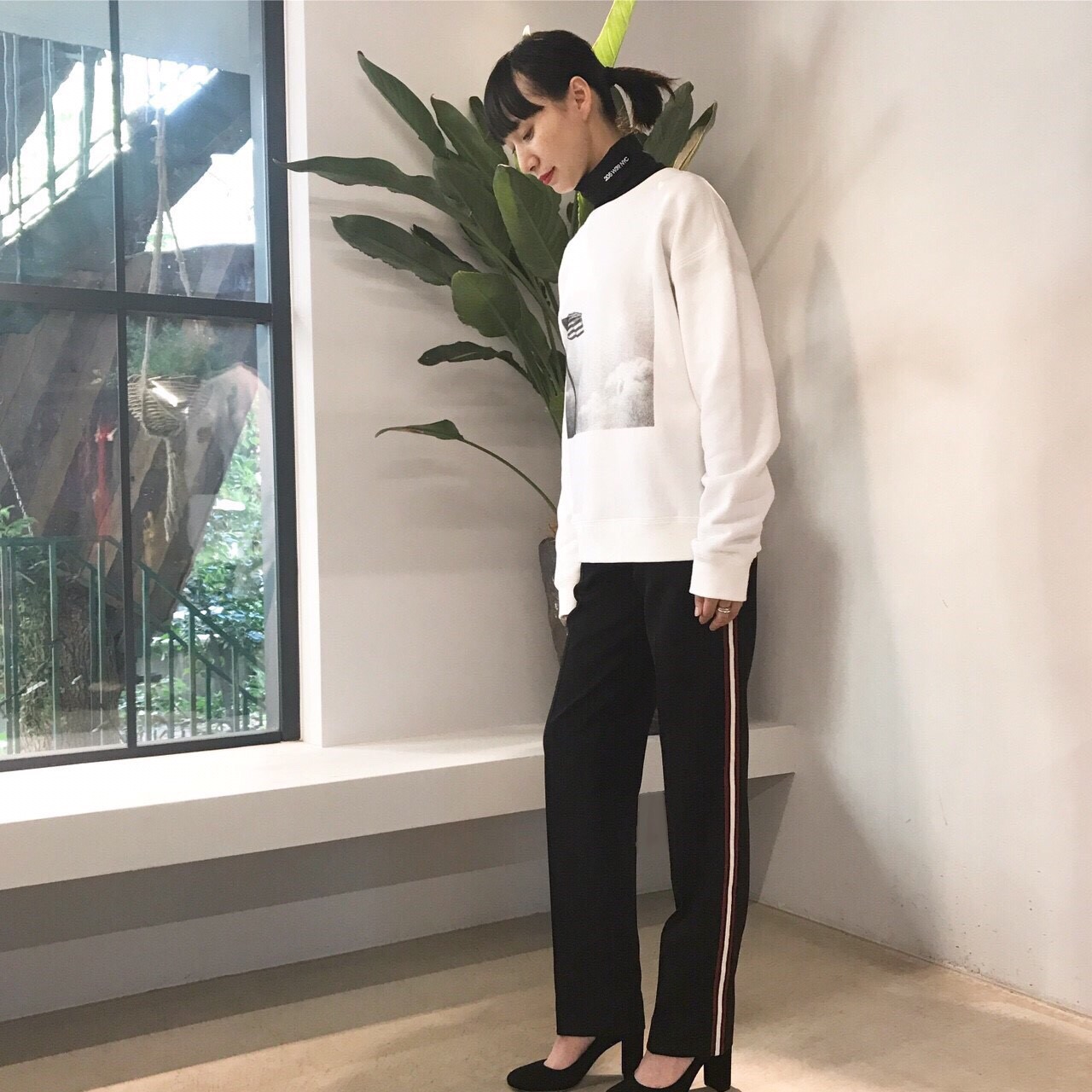 サイドストライプが特徴の定番のスラックスは、すっきりとしたシルエットの美しさも魅力の一つ。