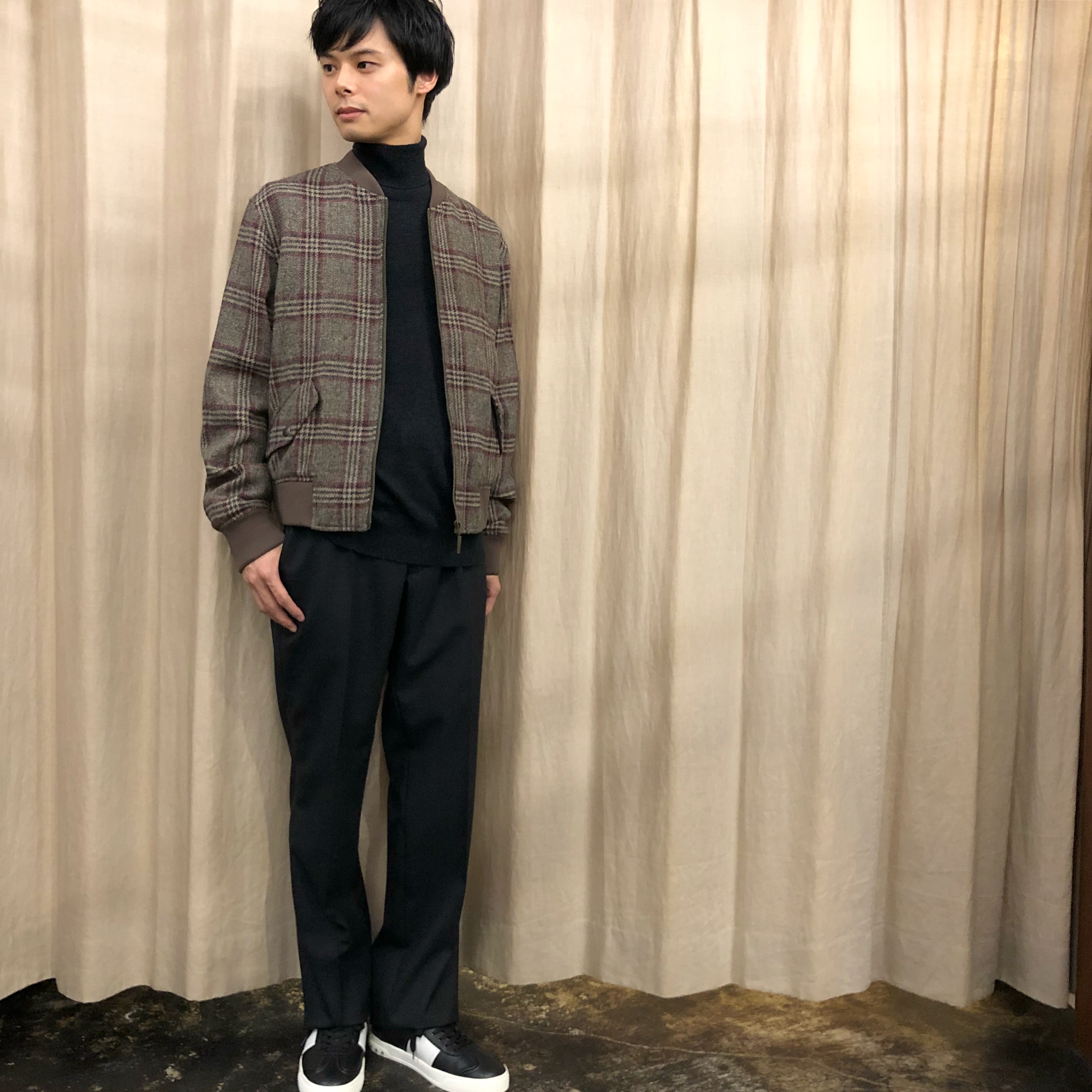 柔らかな色合いのチェック柄が特徴的なEDITIONS MRのボマージャケット。